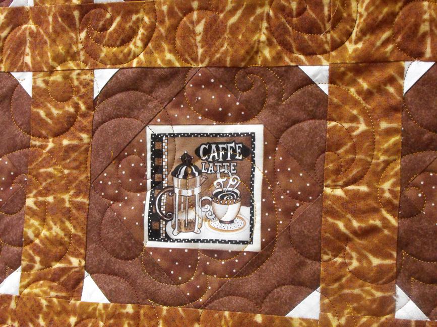 This is an overall freehand design, using Hobbs 80/20 batting and a veriegated 100% cotton thread (Tutti) by Wonderfil.